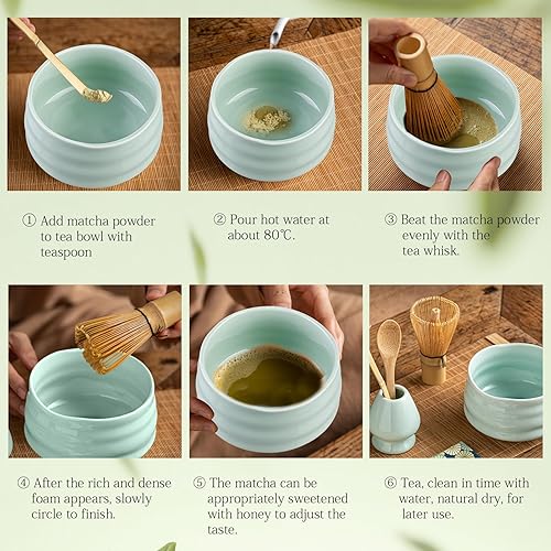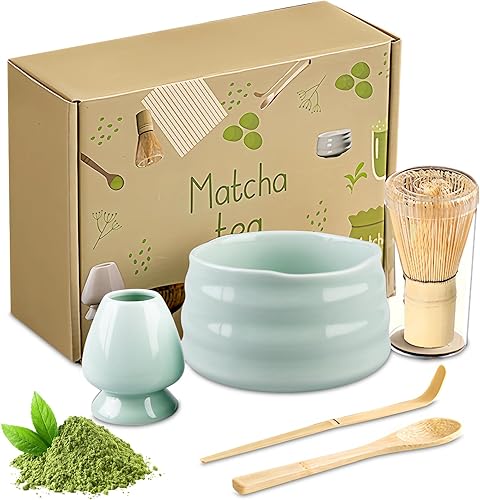 SPORWAY Ensemble de thé matcha manuel avec fouet à matcha, avec 2 cuillères à matcha, support fouet pour matcha, récipient à poudre pour matcha, kit de cérémonie du thé pour la cérémonie du matcha