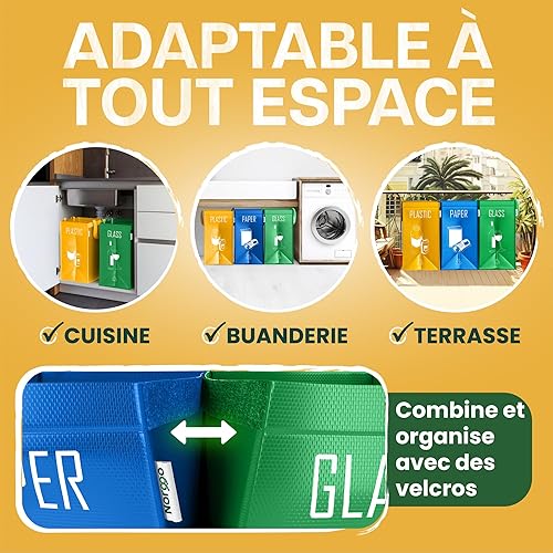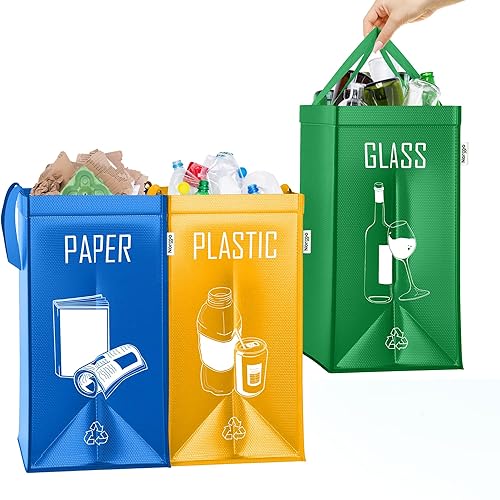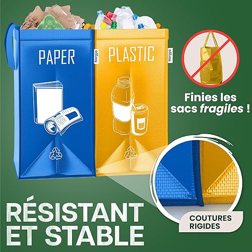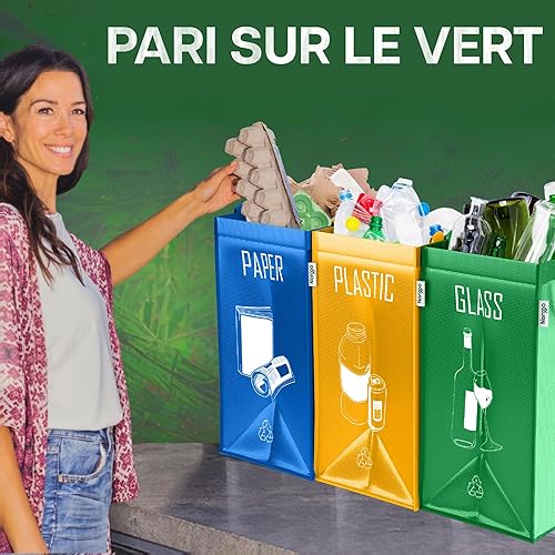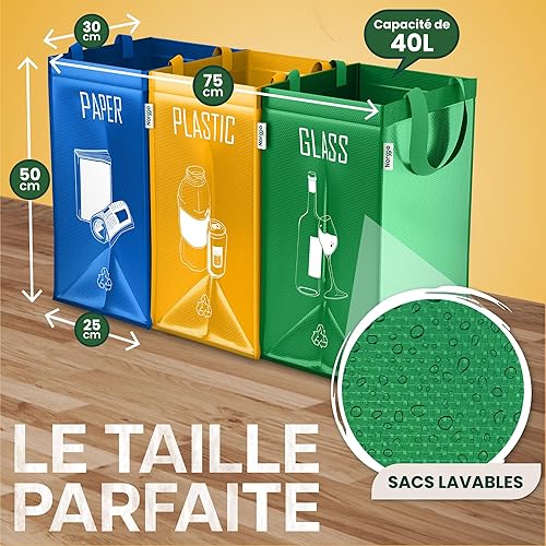 Norggo Pack de 3 Sacs Tri Sélectif–Poubelle de Tri pour Déchets et Recyclage de Grande Capacité 40L– pour Papier, Plastique et Verre–Sacs Écologiques