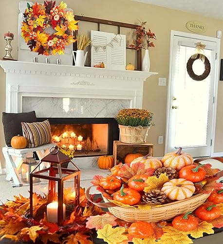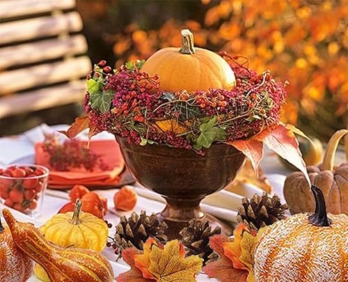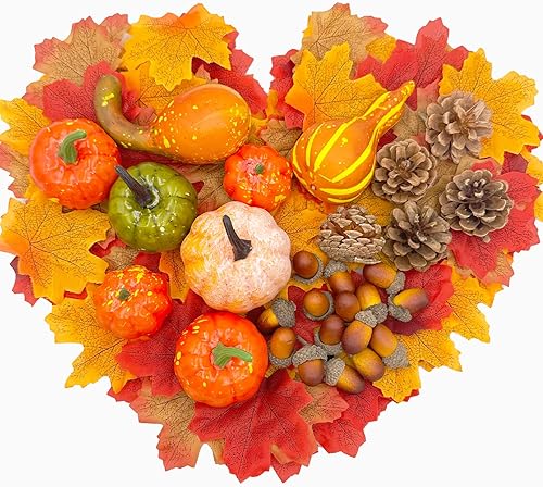 NC Ensemble de décoration de Thanksgiving, Pommes de pin pour, Feuilles d'érable artificielles, Citrouille de récolte, Petits Glands, décoration de fête d'automne et d'halloween, 128 pièces au Total