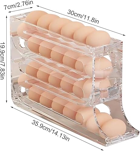Distributeur Oeuf | Range Oeuf pour Réfrigérateur | Rangement Oeuf Frigo à 4 Niveaux Contient 30 Œufs | Support Organisateur D'œufs Roulants Multifonction Pour Distributeur Oeuf