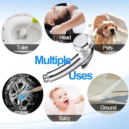Pommeau de douche haute pression avec filetage 1,27 cm chromé avec contrôle marche/arrêt et débit d'eau constant pour baignoires, bateaux, caravanes, camping-cars, salons de coiffure