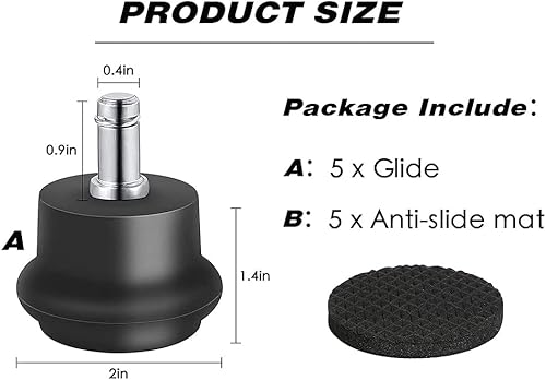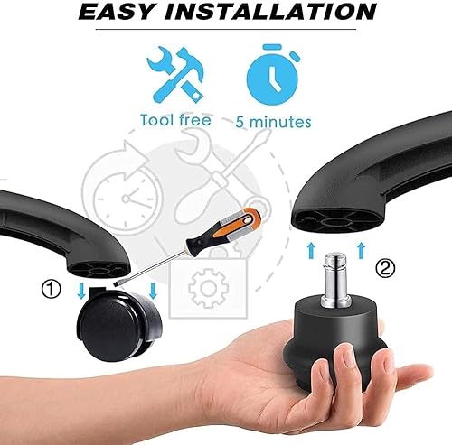 Wanjorlay 5 PièCes Cloche Glisse Chaise de Bureau de Remplacement ou Tabouret Roulettes Pivotantes à Roulettes Fixes Fixes, Roues de Chaise de Bureau