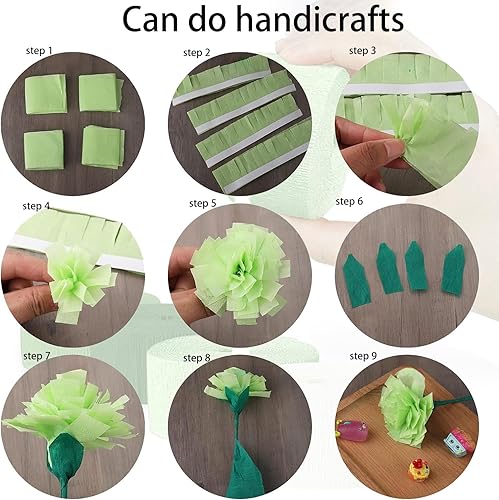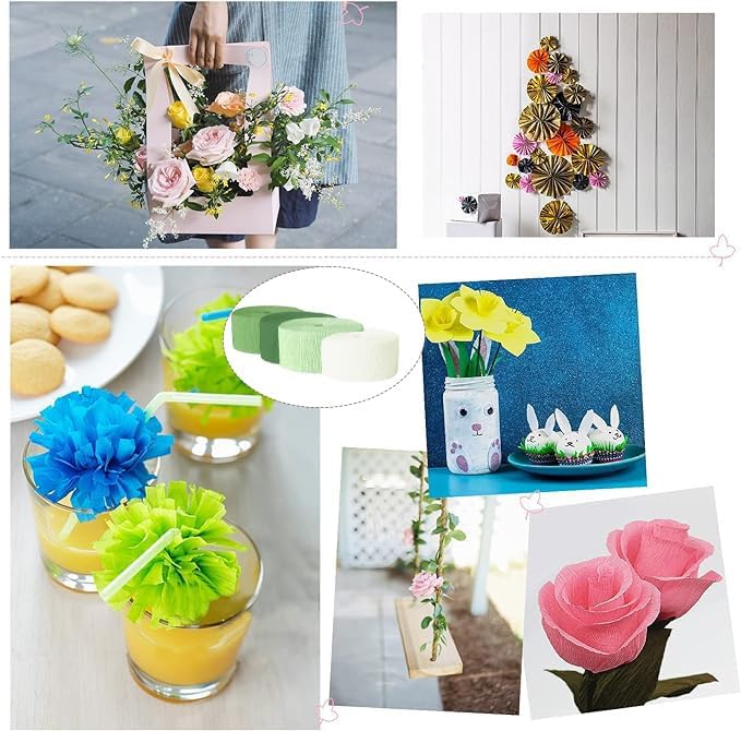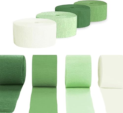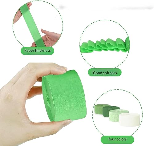 Papier crépon, papier crépon vert clair, vert, vert foncé, blanc, ruban de papier crépon arc-en-ciel pour décoration de fête, décorations de mariage, 4,5 cm x 25 m, 8 rouleaux
