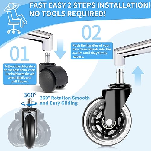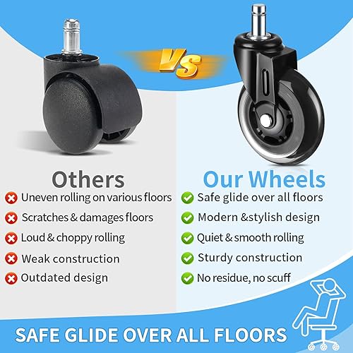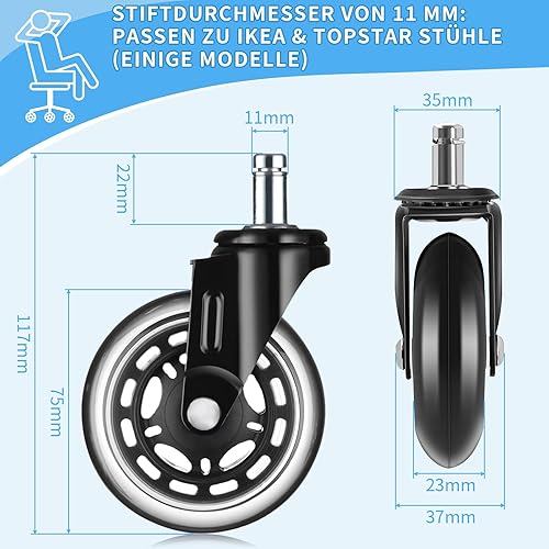 DICLLY 5pcs Roulettes Chaise de Bureau, 11x22 mm,Rotation 360° Silencieuses et Résistantes à l'Abrasion,Protègent le Sol,Supportent jusqu'à 250kg,Convient pour Parquets,Moquettes et Sols Durs