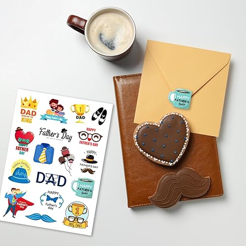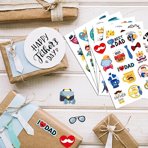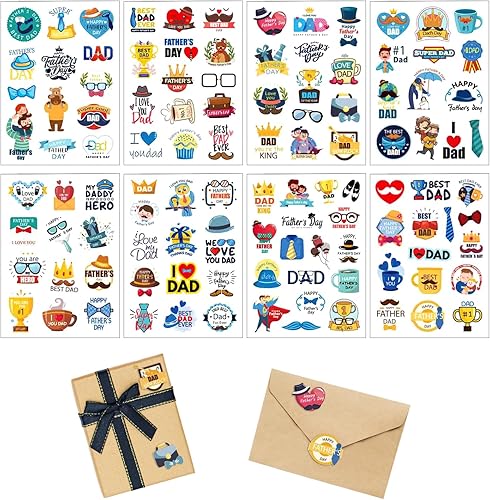 Y7FQJTZ Lot de 8 feuilles d'autocollants pour la fête des pères - Autocollants mignons pour la fête des pères - Décorations pour la fête des pères - Enveloppes - Joints - Boîtes cadeaux