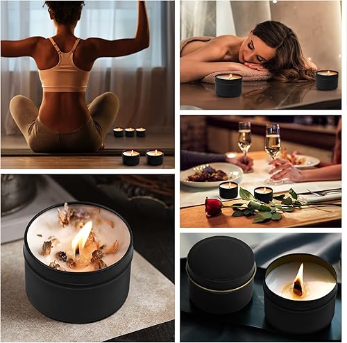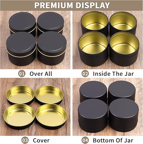 QUOTRE Lot de 12 Boîtes à Bougies en Aluminium 65 * 45mm, Pots de Bougie Ronds Conteneurs Bougie pour La Fabrication de Bougies de Bricolage ou Comme Pot d'épices -Noir
