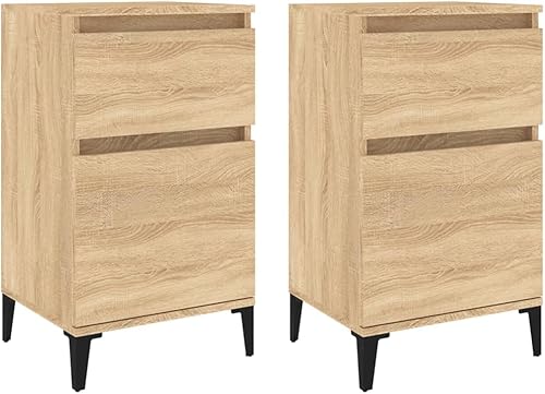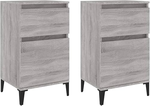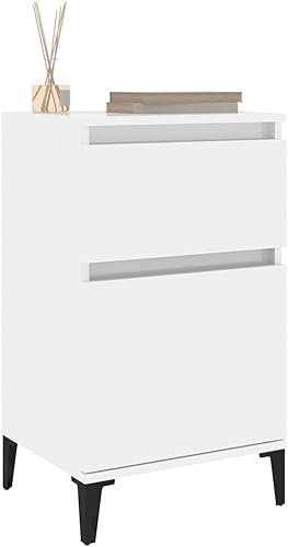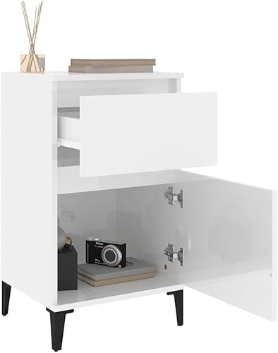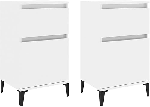 vidaXL Tables de Chevet 2 pcs, Armoires de Nuit avec Rangement, Armoires de Lit, Tables de Nuit, Meubles de Chambre à Coucher, Industriel, Blanc Brillant
