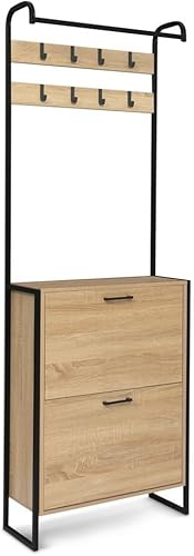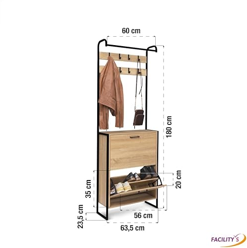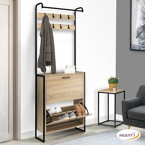 FACILITYS Vestiaire d'entrée avec Porte Manteau et Range Chaussures Effet Bois et métal