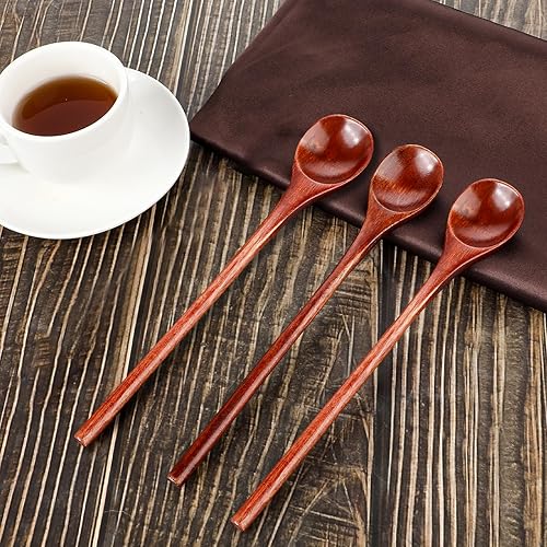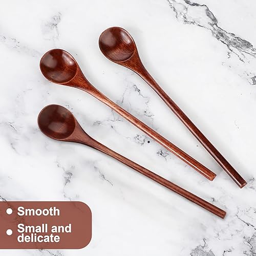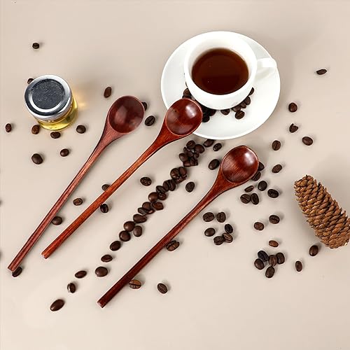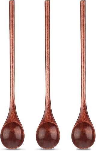 Abeillo Lot de 3 cuillères à miel Nanmu en bois - 20 cm de long - Grande cuillère à miel ronde pour miel, café, thé, crème glacée, mélanger et remuer