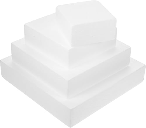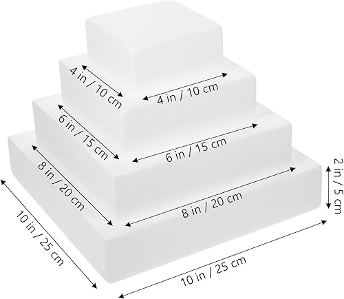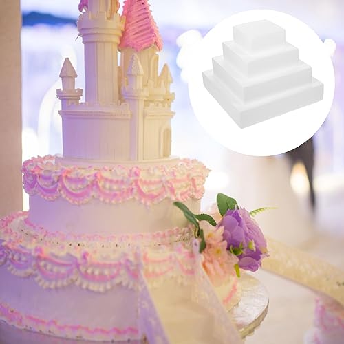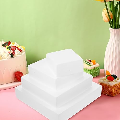 Lot de 4 disques à gâteau rectangulaires en polystyrène - 4 étages - Pour arrangement floral, anniversaire, mariage, fête, idée de bricolage - Blanc