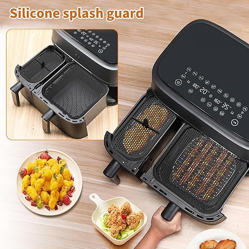Lot de 2 protections anti-éclaboussures réutilisables en silicone pour panier double, friteuses à air, prévention des éclaboussures d'huile et déflecteur facile à nettoyer