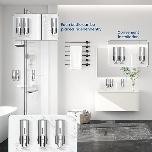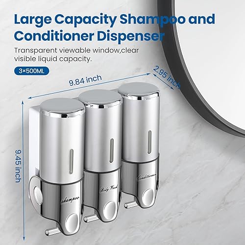 Distributeur de shampooing et d'après-shampoing, distributeur de savon pour douche, distributeur de savon de douche à 3 compartiments sans perçage, distributeur de shampooing, après-shampoing, gel