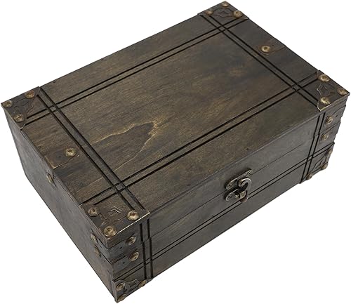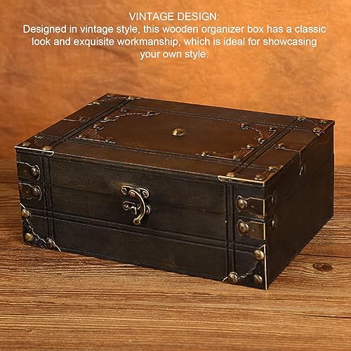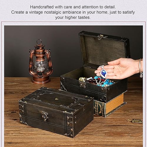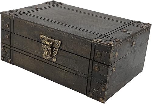 Coffre au Trésor en Bois Antique, Boîte au Trésor Décorative, Boîte de Rangement en Bois Vintage, Boîte au Trésor Multifonctionnelle pour Bijoux, Décoration Intérieure (Style 2)