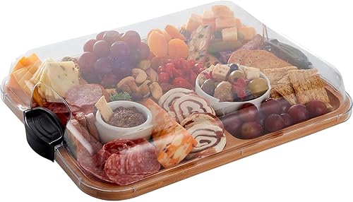 Planches à charcuterie – Plateau de service couvert avec couvercle | Ustensiles de cuisine pratiques en bois pour Noël, Saint-Valentin, Thanksgiving