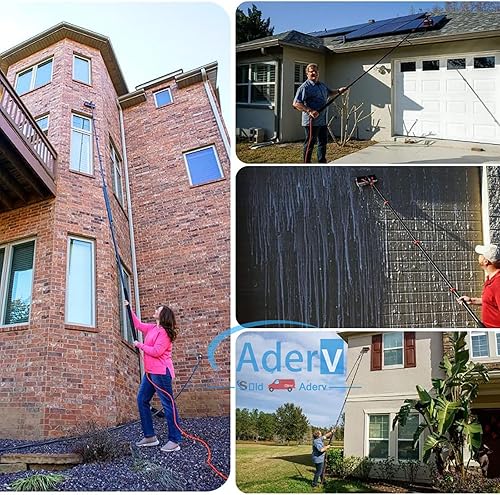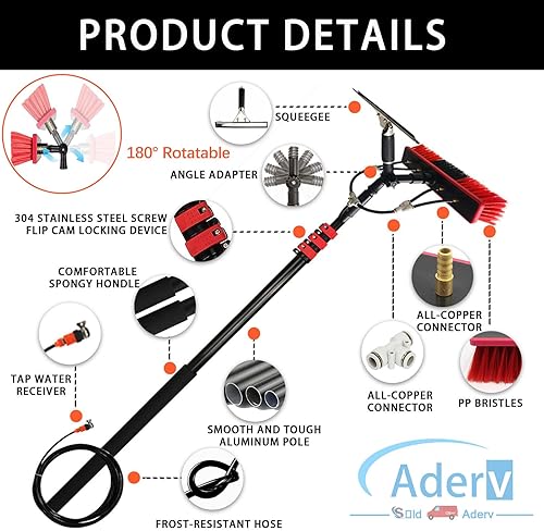 3.6-10.8m Brosse Telescopique Toiture Perche Telescopique Nettoyage Panneaux Photovoltaïques,Kit Raclette Nettoyage Vitre,Balai Brosse Extérieur Terrasse Camping Car Voiture (55cm Brush,10.8)