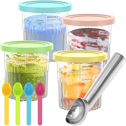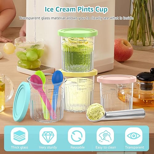 Lot de 4 récipients de rechange pour Ninja Creami Deluxe - Couvercle compatible avec machine à glace Creamy - Passe au lave-vaisselle - Sans BPA - NC501EU NC500EU - Anti-fuite - Couleurs assorties