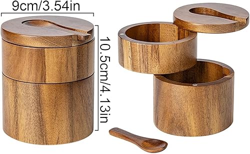 Lpsdssre Wooden Salt Box | Salt Container | Sea Salt Holder | Double Layer Salt Box | Built In Spoon Salt Box Compact Yet Spacious Design For Pepper Seasoning Bath Salt Sea Salt