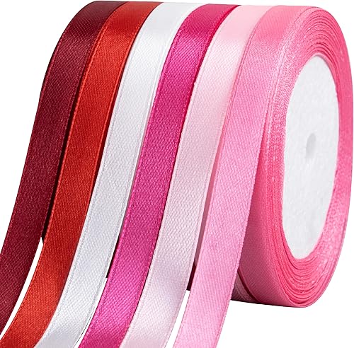 Foshird Ruban de satin pastel 10 mm x 22 m - Ruban cadeau multicolore - 6 couleurs - Pour travaux manuels, décoration pour ballons, mariage, anniversaire, bricolage, emballage cadeau