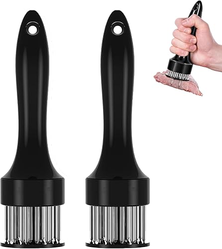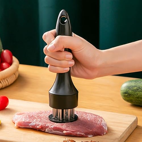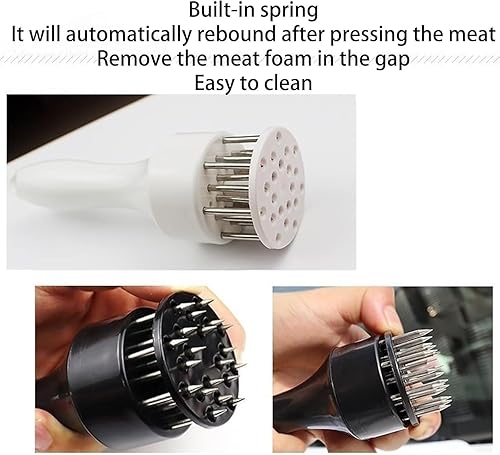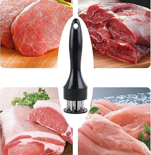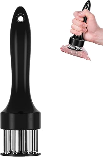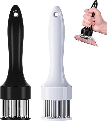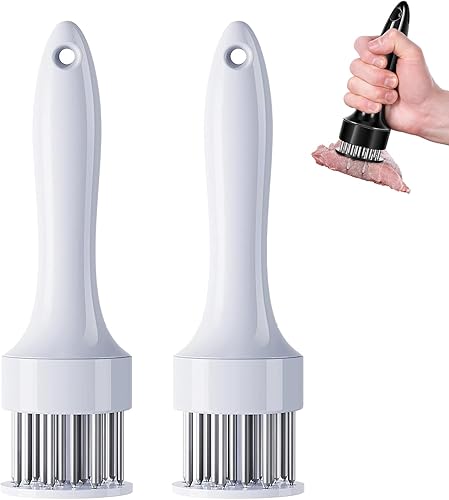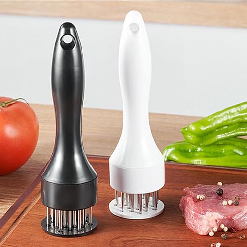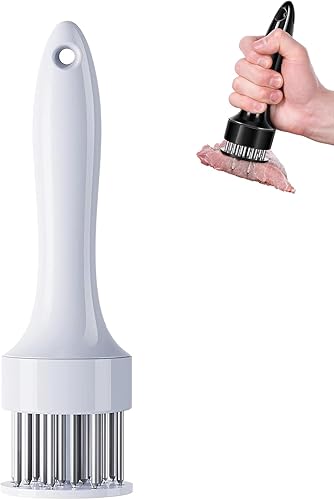 LLELEMAMO Stainless Steel Meat Tenderizer Needle, 21 Pin Ultra Sharp Meat Tenderizer Tool, Meat Marinating Tool, Steak BBQ Kitchen Cooking Tool, for Tenderizing Pork, Beef, Chicken, Marinade (White)