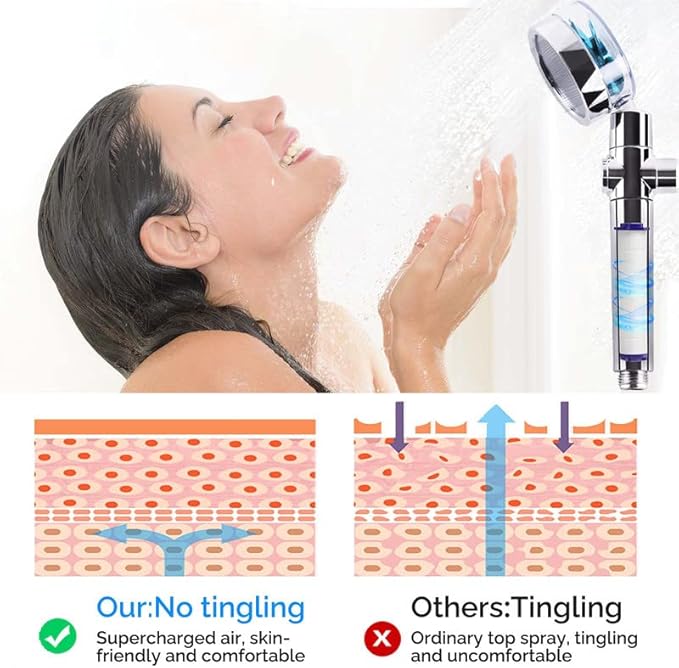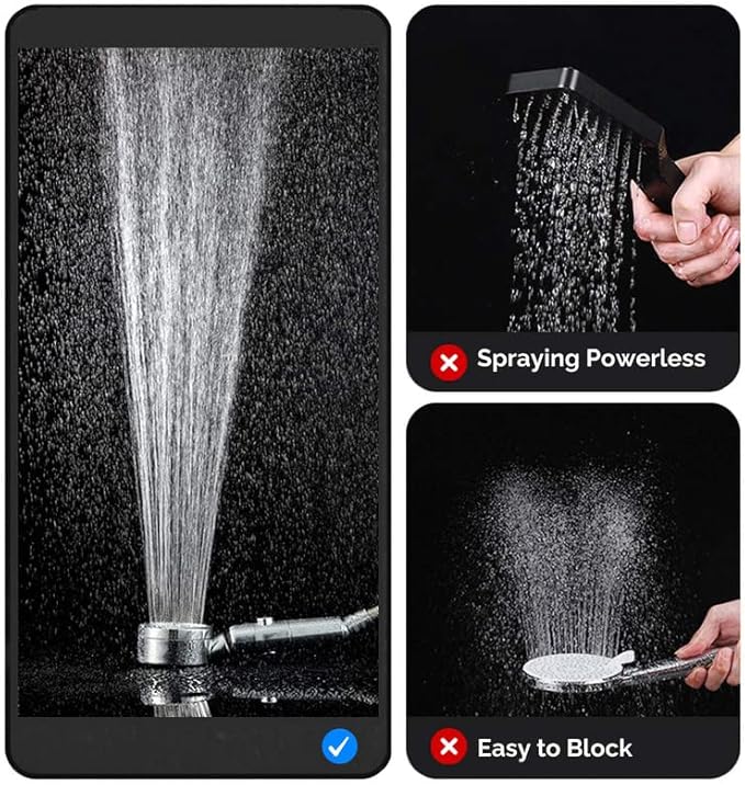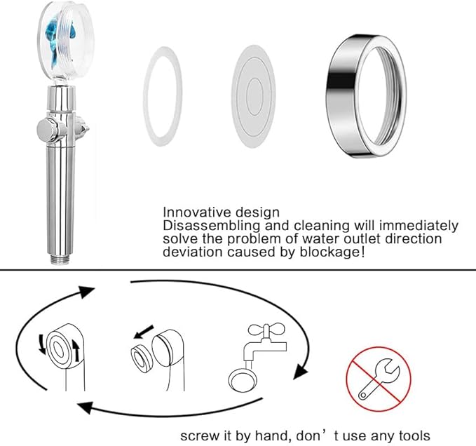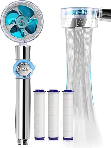 Givenme Douchette à main, pommeau de douche à haute pression rotatif à 360°, économiseur d'eau, augmentation de la pression, 2 types de jet avec 3 filtres coton-polypropylène (bleu)