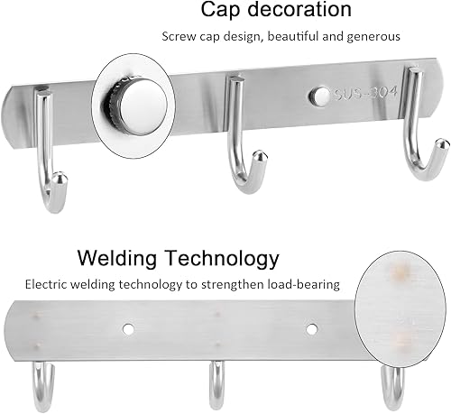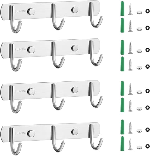 SHEENO 4 PCS Porte Manteau Mural,3 Hook Patères Porte Manteaux Design En Acier Inoxydable,Patères Salle De Bains Solide pour Vêtements, Chapeaux, Peignoirs