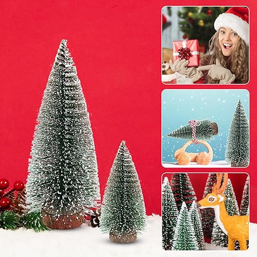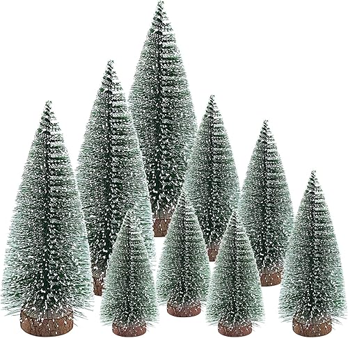 9 Pièces Petit Sapin de Noel, Sapin Noel Artificiel avec Base en Bois pour Décoration Noël Chambre DIY Vitrines