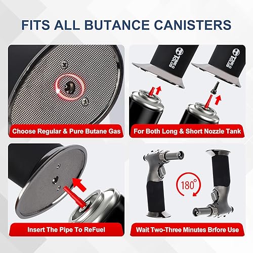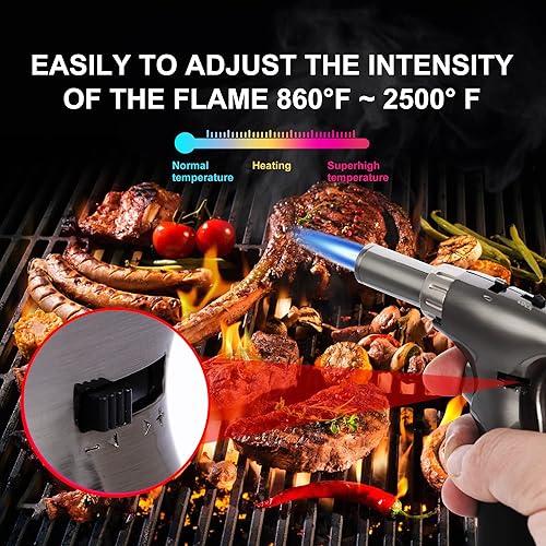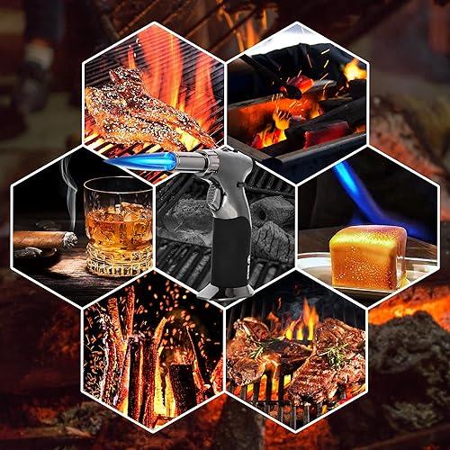 Chalumeau à Butane, Grand Briquet à Double Flamme avec Verrou de Sécurité Réglable, Rechargeable, Multi-usage, pour la crème brûlée, la cuisson, le barbecue