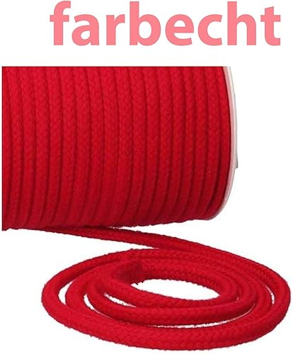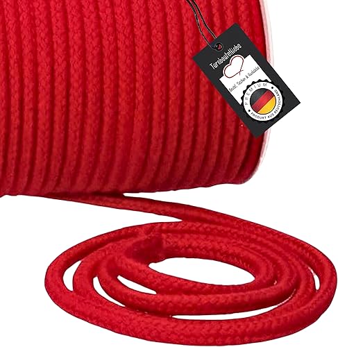 Turnbeutelliebe® Cordon 100% Coton 8mm Large, épais - pour Sacs de Gym, Sacs & Pantalons - à Coudre - Beaucoup de Couleurs et Longueurs - tressé - Corde - cordelette - Bricolage - Ruban (Rouge, 3)