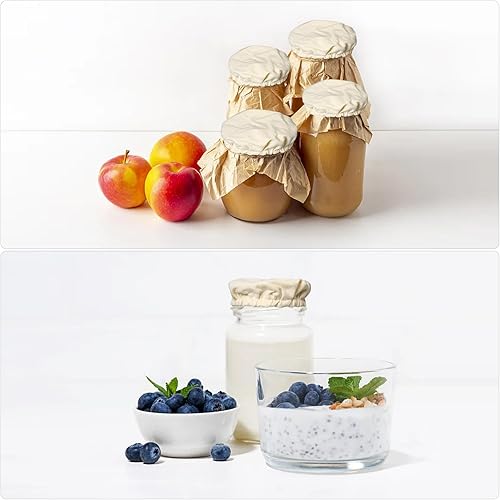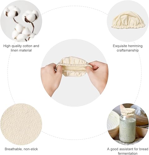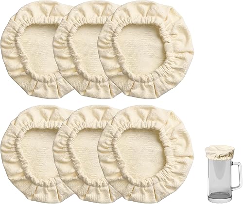 Pumwoy 6 Pièces Couvercles en Tissu pour Pots de Fermentation, Couvercle de Fermentation de Pain, Couvre-Pots En Tissu Élastique Couvercle de Levain pour Bouche de Pot de 7.5 à 10.5cm