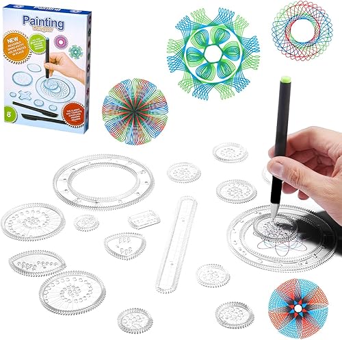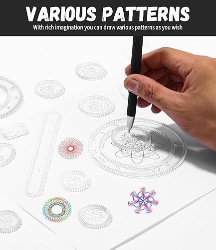 LEAZZLE Spirographe, 28 pièces Spirograph Deluxe Set,Dessin Spirale Ensemble, Multifonctionnel Spiral Designer, Mandala Designer, Creatif Pochoirs pour Peinture, Modèles de Dessin pour Enfants