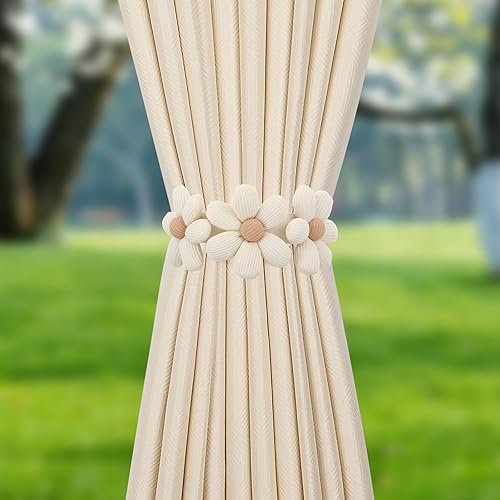 Dimeho Lot de 2 attaches de rideaux en forme de fleur mignonnes - Fermeture solide - Empêche les fuites de lumière - Corde décorative pour chambre à coucher, fenêtre, maison, bureau - Gardez le rideau