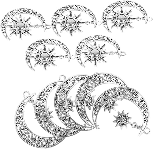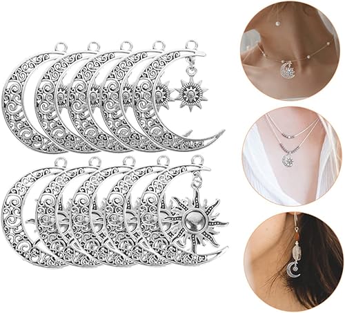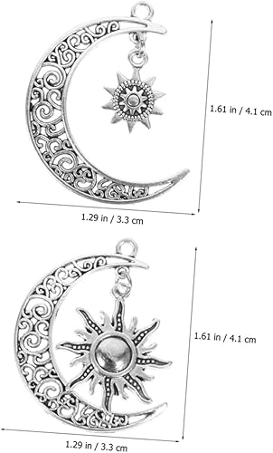 IWOWHERO 10 Pièces Ornements de pendentif rétro filles collier élégant soleil pendentif lune boucle d'oreille bricolage charmes bijoux pendentifs décors charme de bijoux alliage Silver