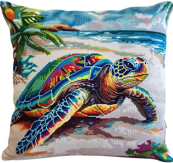Coussin à Crocheter Tortue Crochet avec Sac et Fil, kit de Crochets, kit de Crochet de avec Fournitures de Tricot et Fil, kit de Crochet pour Débutants 43cmX43cm