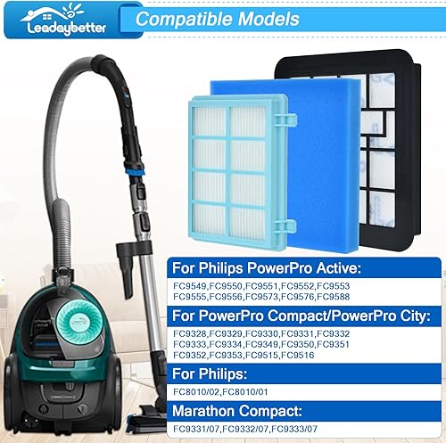 Lot de 2 filtres pour Philips FC9331/09, FC8010/02, FC9332/09, FC9329, FC9555, FC9333 FC9334 - Filtre de rechange pour Power Pro Compact Cyclone 5 Aspirateur