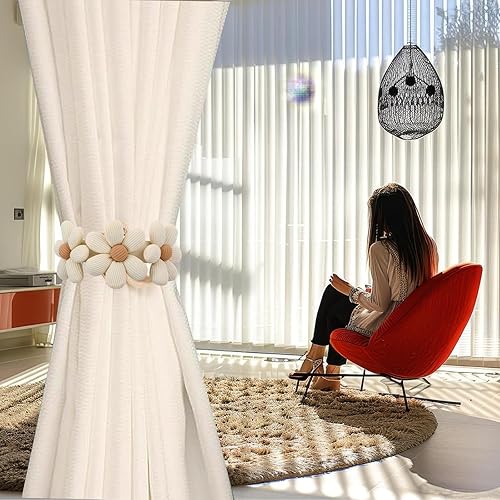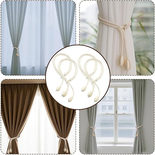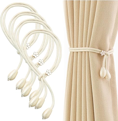 Lot de 4 Embrasse pour Rideaux, Rideaux en Coton tissé à la Main Supports de Rideaux embrasses à Rideaux, Modes Embrasses à Rideaux, Attache Rideau pour Décoration de Maison, Bureau, Blanc Cassé