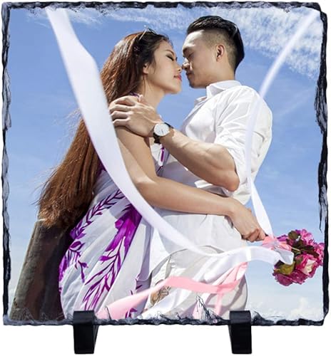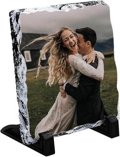 Lithographie de Personnalisée avec Photo Image Cadre de Photo en Pierre DIY Plaque de Tableau Calcaire avec Support Souvenir de Couple Personnalisable Cadeau Exquis de Noël Anniversaire Saint-Valentin