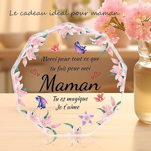 Hapculon Cadeau Fete des Meres, 2025 Cadeau Maman, Ornements en Acrylique, Cadeaux Anniversaire Noel Fete des Meres pour Maman Femme Mere Original