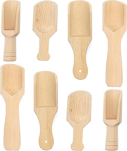 HAOBIN 8 Pièces Mini Cuillère en Bois pour Sel de Bain, Petite Pelle, Ustensiles de Cuisine pour Farine, Épices, Thé