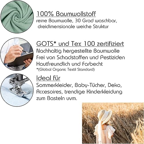 VmG-Store Lot de 3 tissus en mousseline de 0,5 m x 1,35 m - Double Gauze - 100 % coton - Tex Standard 100 (Lot de 3 pièces de 0,5 m, lot 02)