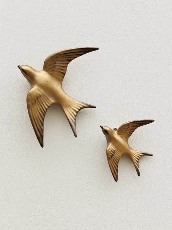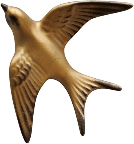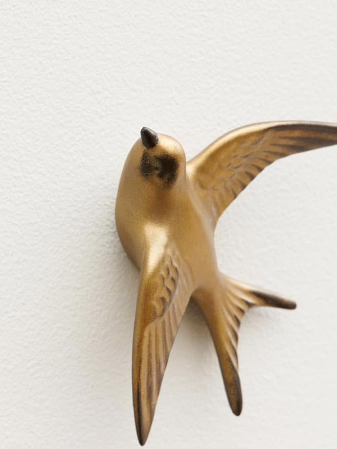 Hirondelle Murale Décorative, 9,5 cm x 8 cm, Finition Dorée, Style Vintage