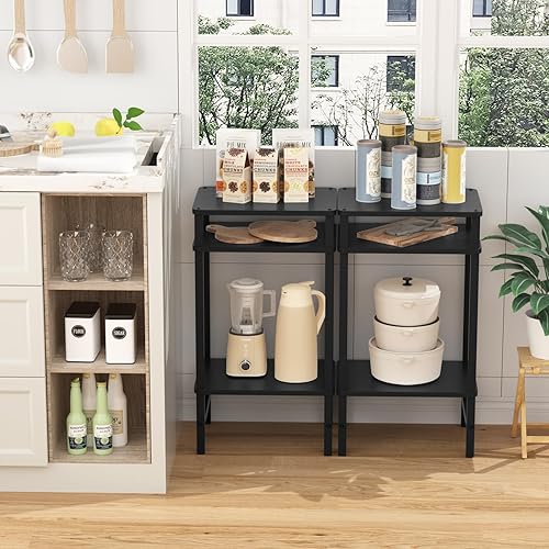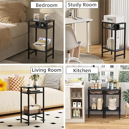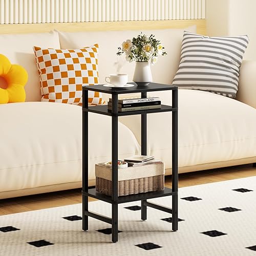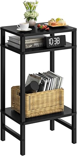 LELELINKY Table d'appoint à 3 niveaux - Moderne - Table d'appoint étroite pour les espaces étroits - Table d'appoint en bois avec espace de rangement - 70 cm de haut - Table de chevet pour salon,