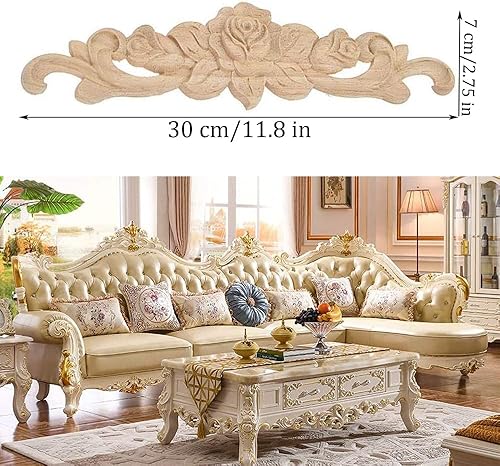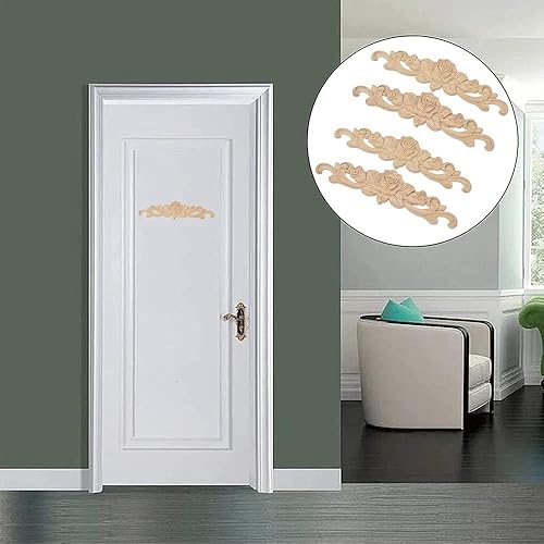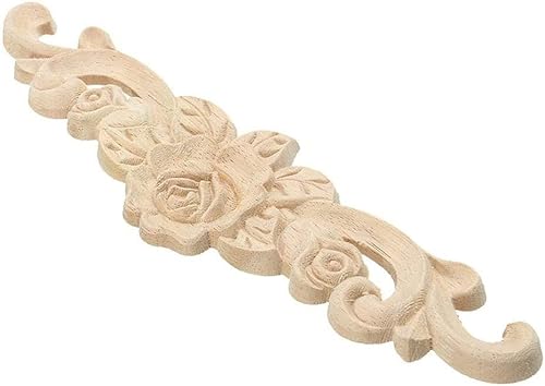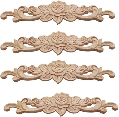 Amasawa 4 Pièces Cadre Bois Sculpté Applique, Rose Bois Sculpté Applique, Meubles Bois Sculpté Applique, Fleur Bois Sculpté Applique, pour Porte Meubles Cabinet Mural Armoire Décor Maison