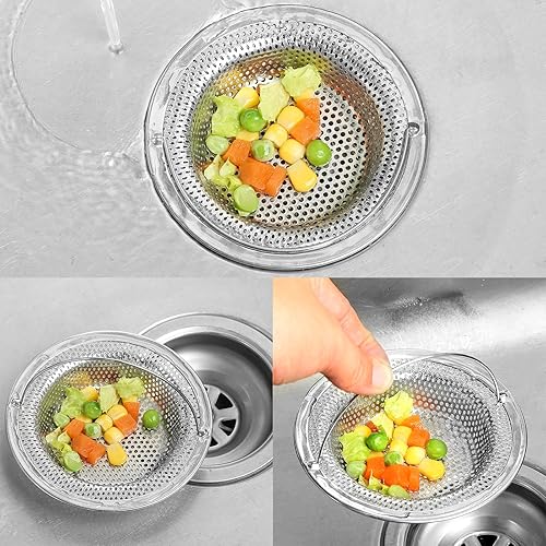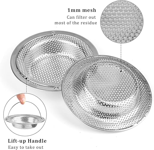 RAFIYU 2PCS Filtre à évier de Cuisine, Crépine de Vidange d’évier en Acier Inoxydable avec Poignée Relevable, Diamètre Extérieur 11 cm x Hauteur 2 cm - Anti-Obstruction, Résistant à la Rouille