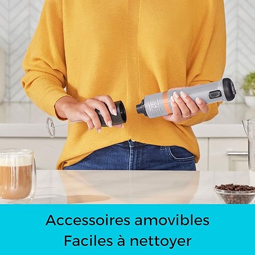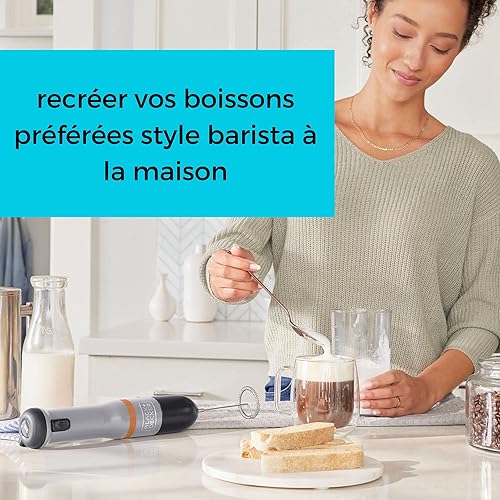 BLACK+DECKER Mousseur à Lait Accessoire pour Robot de Cuisine Multifonction KitchenWand Mixeur Plongeant à Main Compact et Ergonomique BCKM101MFFF-XJ
