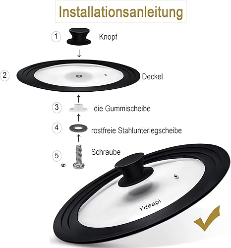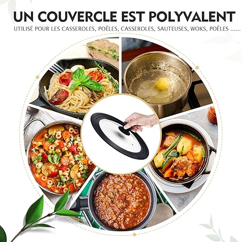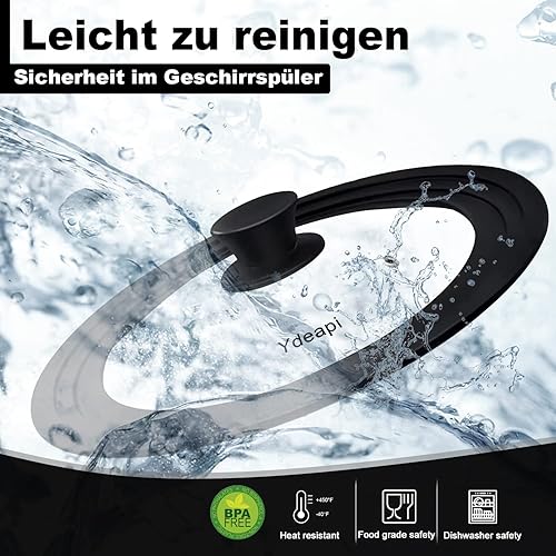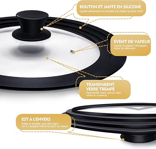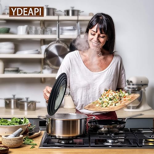 Ydeapi Couvercle Universel - Anneau en Silicone pour Casseroles/Poêles de Diamètre 24/26/28 cm, peu Encombrant, Design à Bords Gradués, Trou de Vapeur, Verre, va Lave-Vaisselle