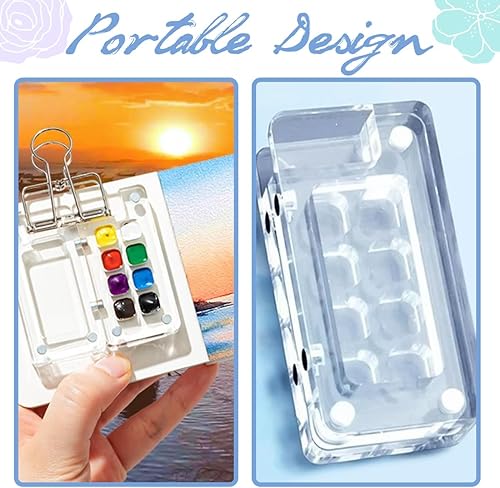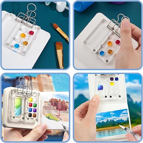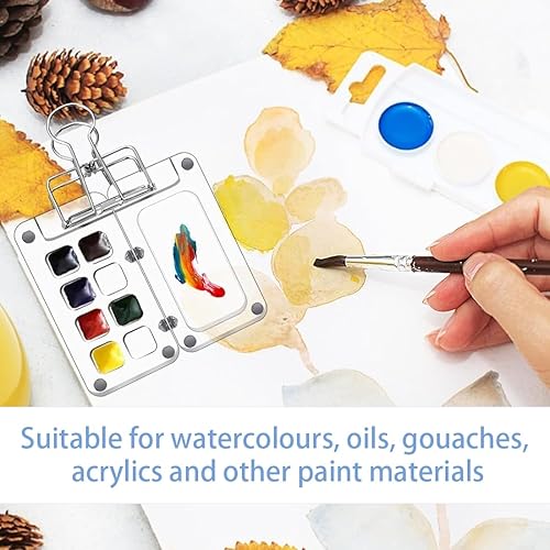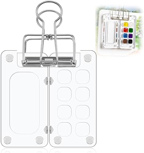 Palette Aquarelle Portable de Voyage, Mini Palette Aquarelle, Pour l'aquarelle, la gouache et l'acrylique, Palette pour les Artistes et les Amateurs de Peinture, 8 Grids Mini Palette avec Clips