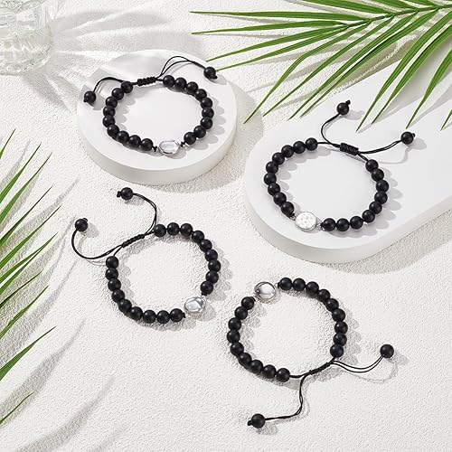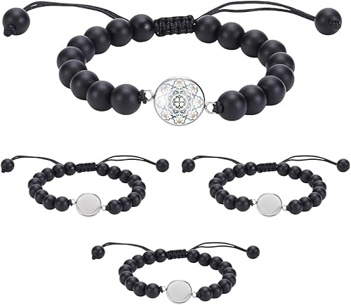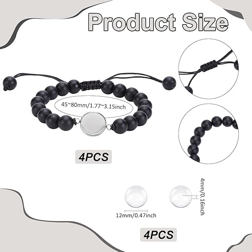 UNICRAFTALE 4 ensemble de Bracelets en Pierre Naturelle Chaîne Cubaine Bracelet Tressé Noir Cabochon Plateau Vierge Cabochons Ronds en Verre de 12mm Bracelets pour Hommes et Femmes Cadeaux
