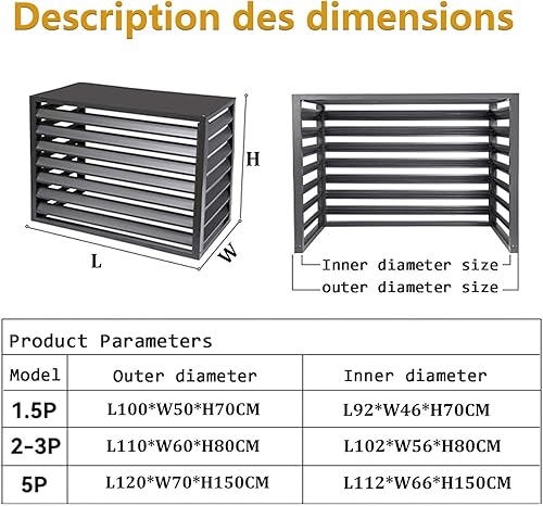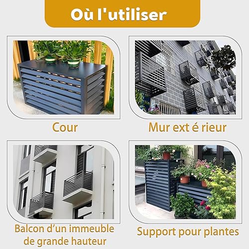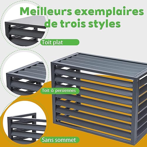 Dnowegas Cache Climatiseur Exterieur cache pompe à chaleur Cache climatiseur aluminium Cache Clim Aluminium Gris Louver Haut-L100*W50*H70(1.5P)