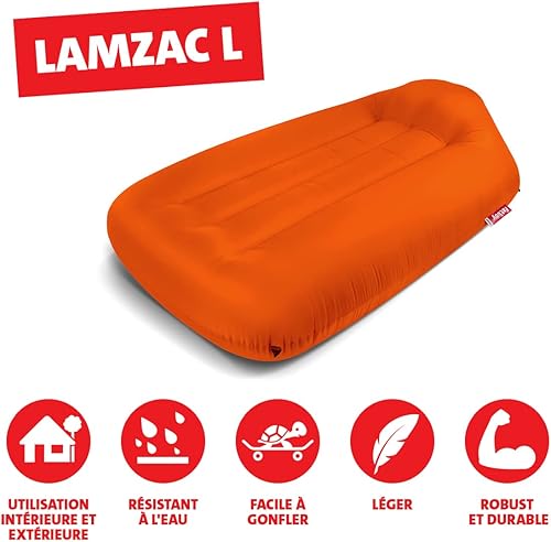 Fatboy® Lamzac L Canapé/Pouf/Sofa Gonflable | Orange Hamac rempli d'air | pour l'extérieur Plage, Jardin ou Piscine | 195 x 112 x 50 cm
