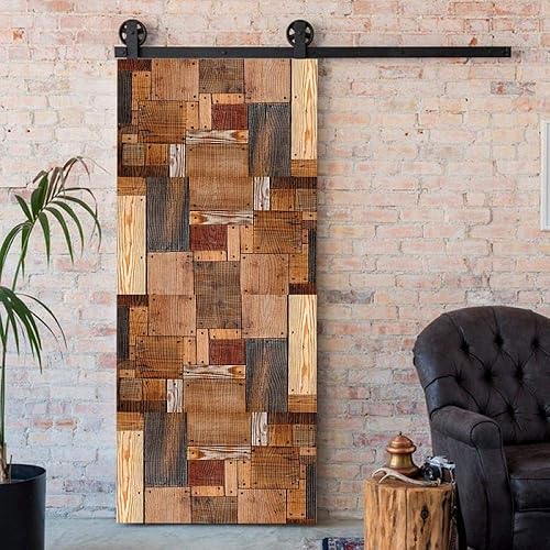 Auvvsovs® Stickers De Porte 3D Grain De Bois De Mosaïque Rétro 80x200 cm Auto-Adhésif Imperméable Amovible Pour WC, Chambre, Entrée